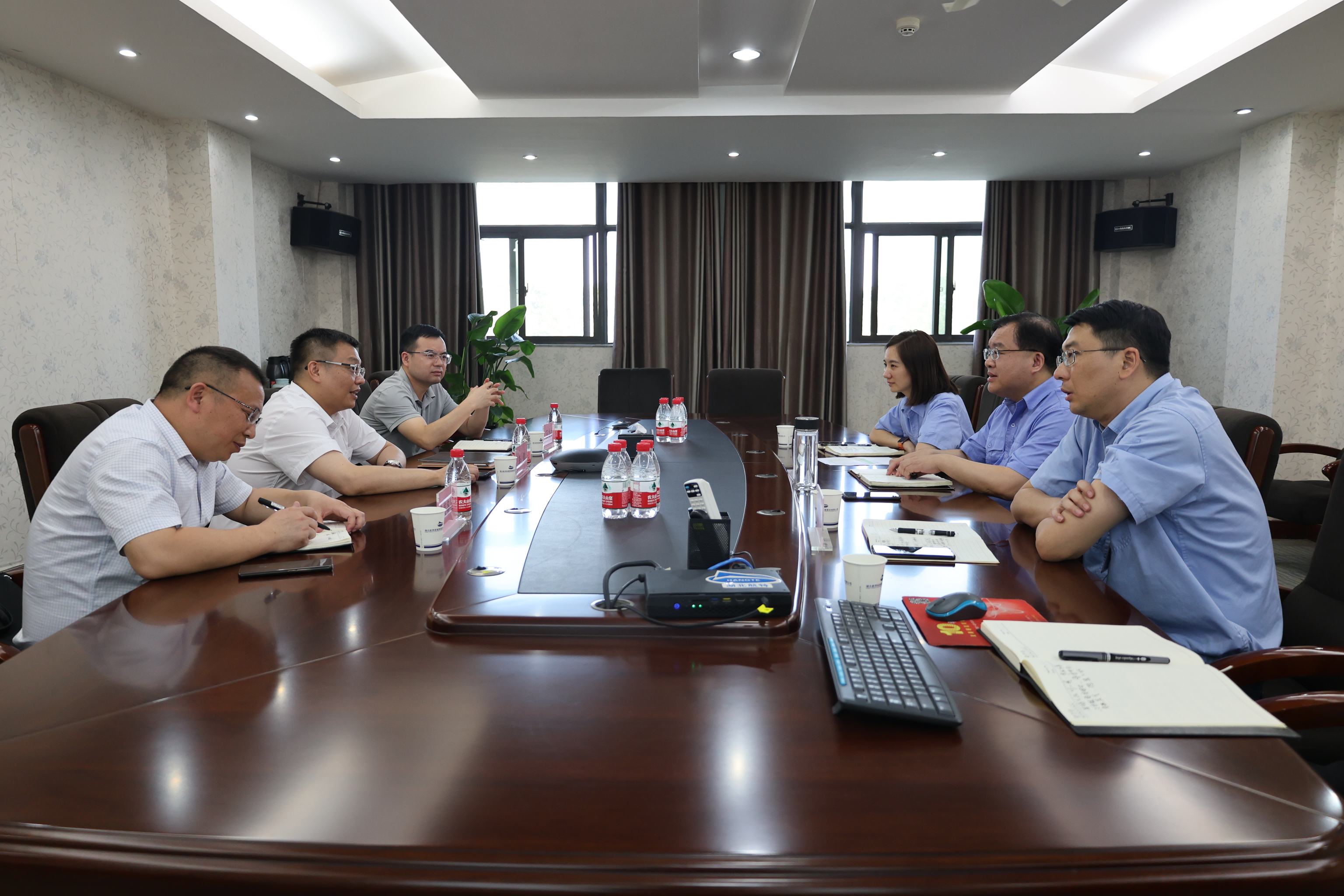 7月10日,荊門高新區(qū)·掇刀區(qū)委副書記、區(qū)委政法委書記李鵬等一行到航特調(diào)研。總經(jīng)理陳陽陵,副總經(jīng)理陳云參加座談。