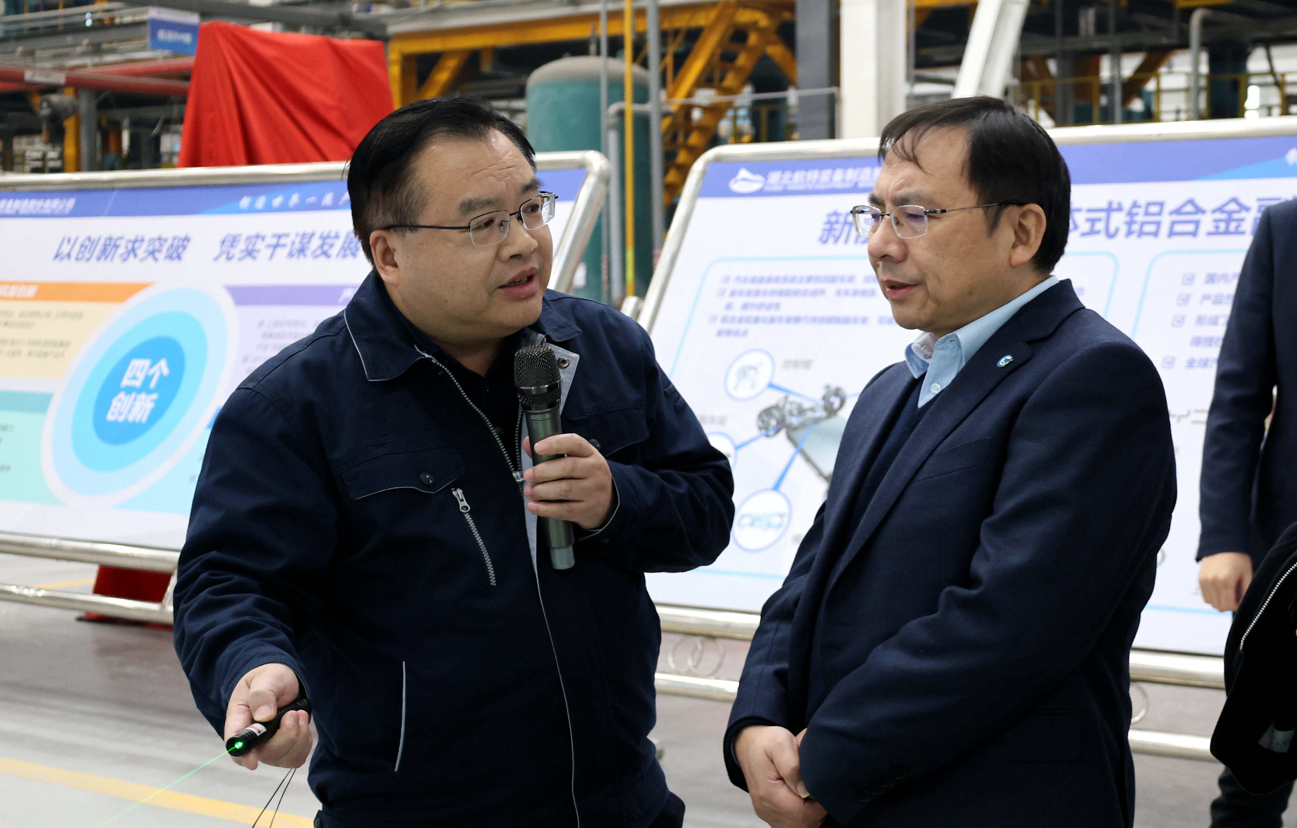 在公司總經(jīng)理陳陽陵,副總經(jīng)理陳云陪同下,李磊一行參觀了公司輕量化底盤生產基地,實地了解了公司主要產品和客戶市場情況。座談中,陳陽陵向李磊詳細介紹了航特裝備各產業(yè)板塊發(fā)展情況以及未來發(fā)展規(guī)劃。